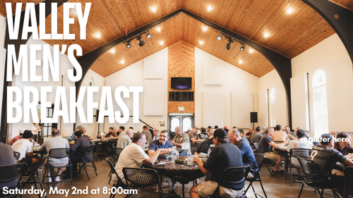We’d like to invite all men to join us for a men’s breakfast on Saturday, May 2nd at 8:00am in the South Valley Chapel! We’ll get together in fellowship as we enjoy a meal, a time of worship, and a good Word! Register today!