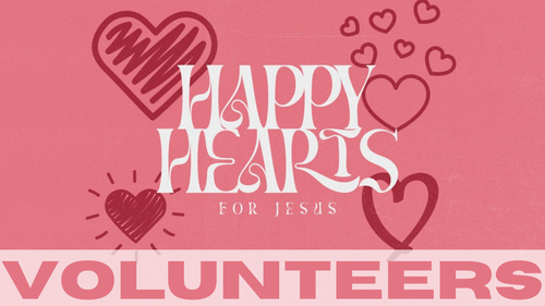 We're looking for some willing individuals that can love on some kids (and their parents) through various roles during the 10:00am-1:00pm Happy Hearts for Jesus event on Saturday, February 14th.